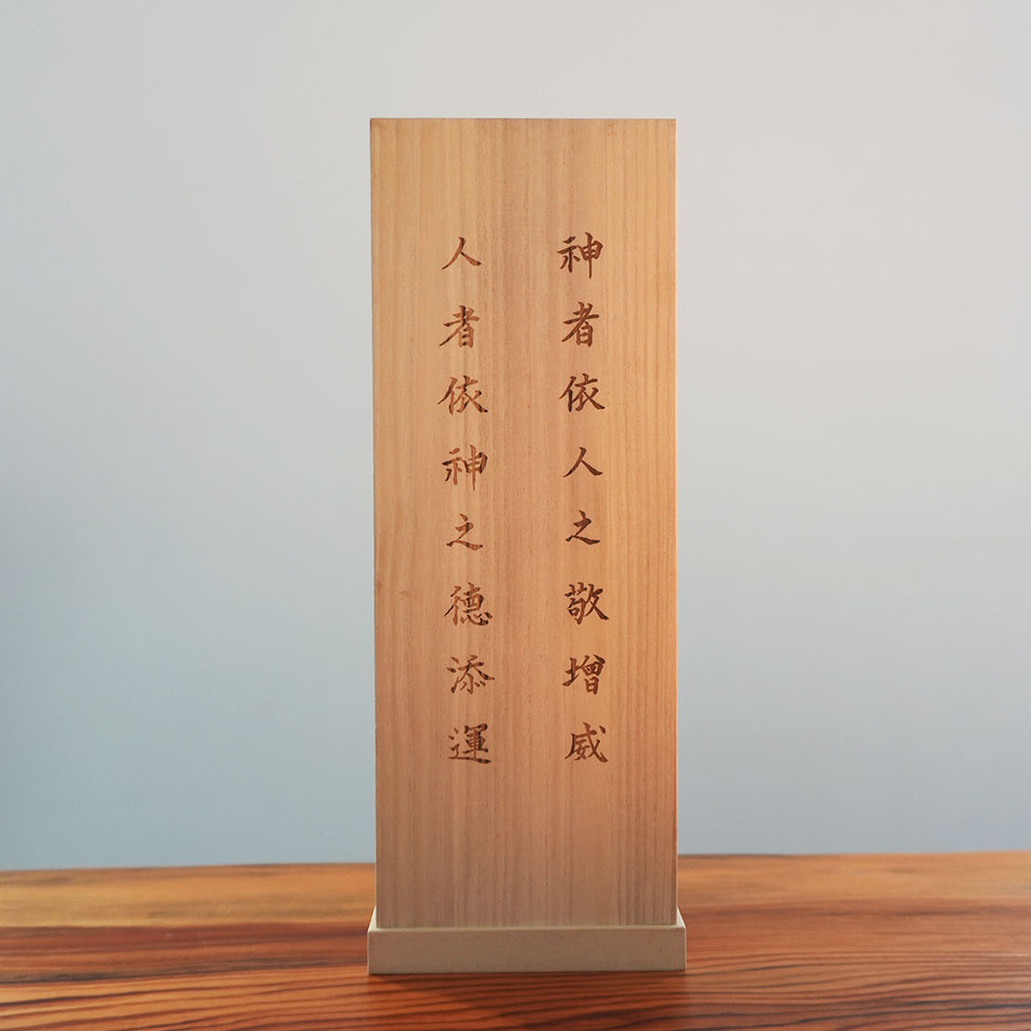 材質 桐形状 アクリル板付き加工 レーザー加工 静岡県焼津神社の復興クラウドファンディングの返礼品に採用いただきました。 世界遺産「紀伊山地の霊場と参詣道」が囲む「龍神」で育んだ樹齢300年を超える真榊から奉製された樹札。 神聖かつ唯一無二の逸品を大切に守り、その存在感を感じていただけるよう、アクリル板仕様を採用。 神聖さと保護性を両立した設計となっています。